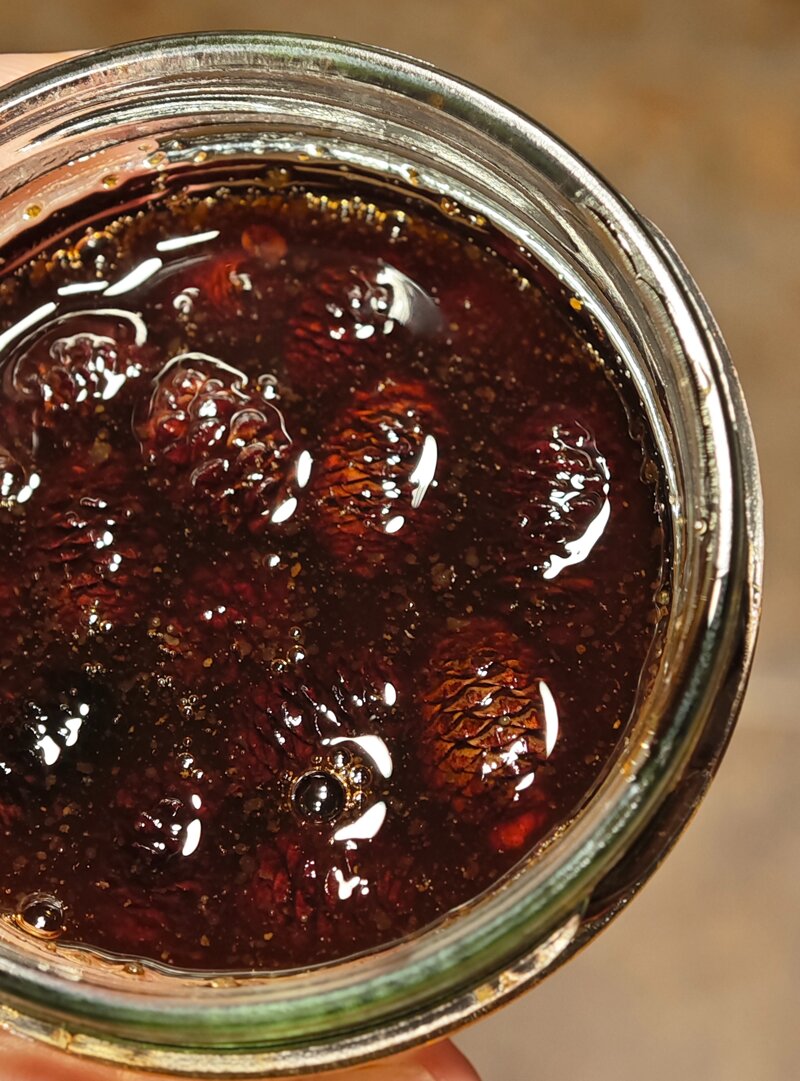 Il risultato è una marmellata balsamica, resinosa e leggermente amara, con note di miele, legno e sottobosco. Tradizionalmente usata per la gola e la tosse, oggi è un ingrediente prezioso anche in cucina creativa.